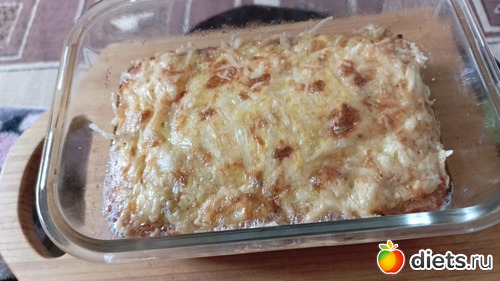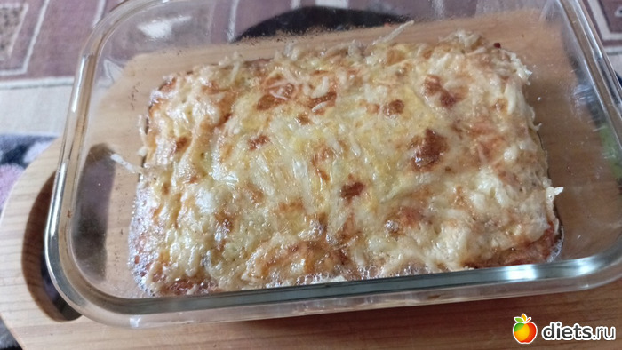 Смазать форму, переложить все в форму и запекать при 180 градусах 20-25 минут, затем посыпать сыром-и в духовку до зарумянивания.
