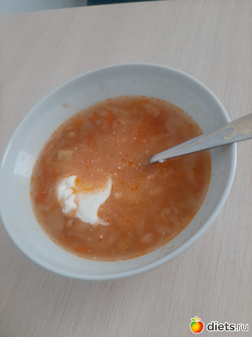 Обед дома: суп щи (288 гр) со сметаной (25 гр), клубника (95 гр) и зеленый чай без сахара.