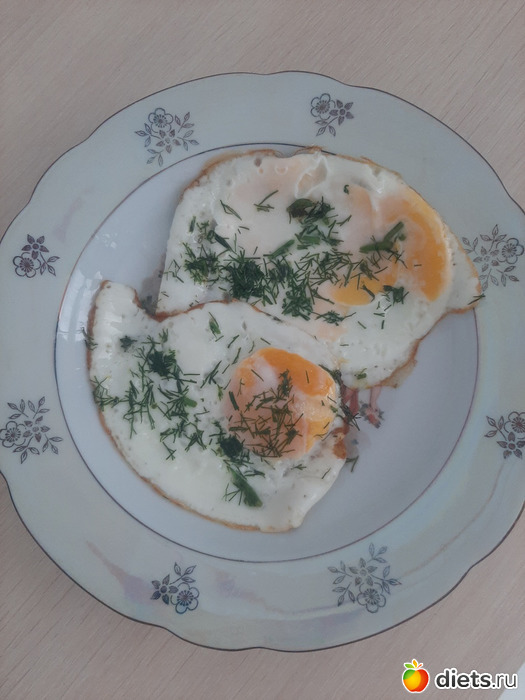 Завтрак: яйца жареные (88 гр) и зеленый чай без сахара.