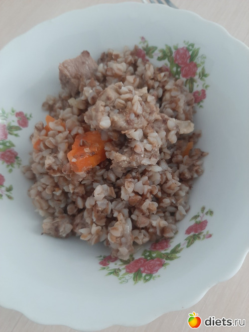 Ужин: гречка со свининой (260 гр) и зеленый чай без сахара.