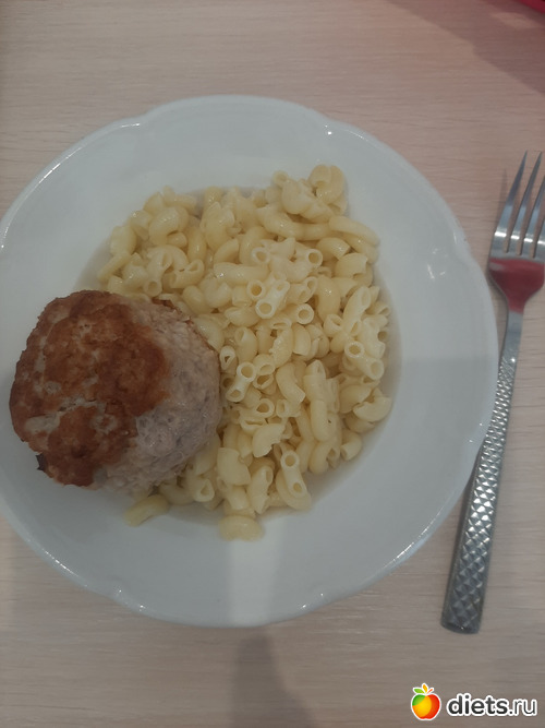 Ужин: свиная котлета (120 гр) и макароны отварные (161 гр).