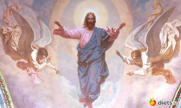 Даже само слово «вознесение» говорит о преодолении законов тяготения. В слове «вознесение» слышится полет и свобода. В духовном плане вознесение на небо связано с вознесением на крест: движение вверх ведет к славе, но проходит через страдание.