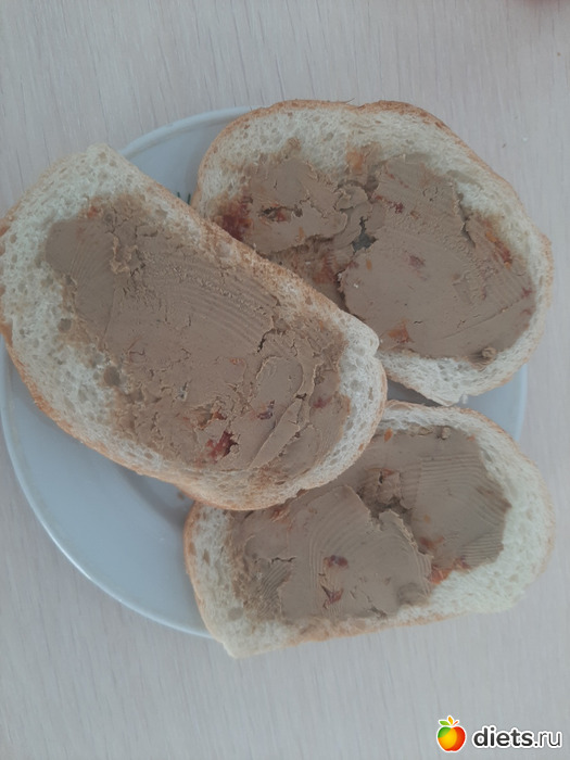Ланч: хлеб белый (53 гр), паштет печеночный (43 гр) и банан (60 гр).