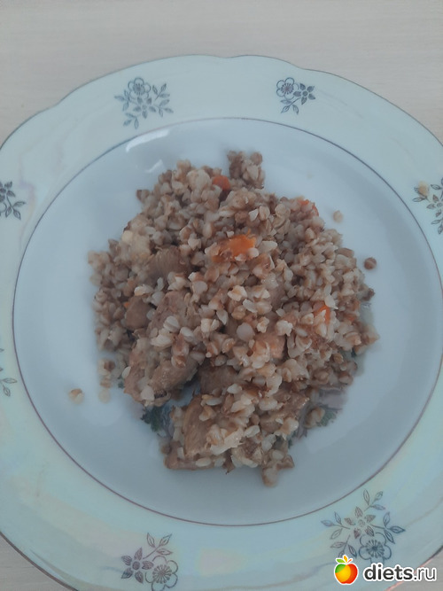 Ужин: гречка со свининой (149 гр) и зеленый чай без сахара.