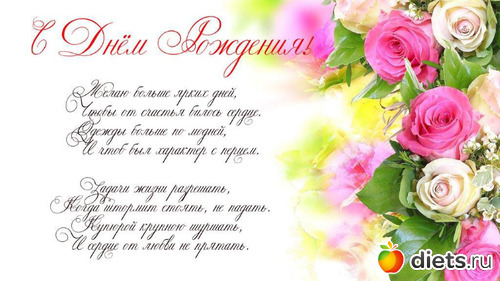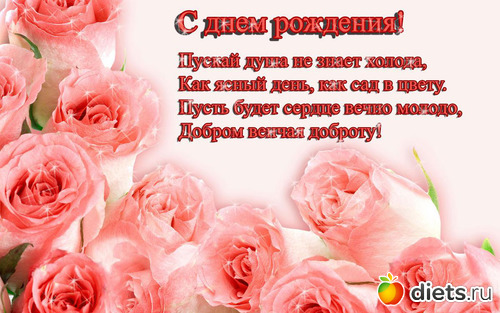 Поздравляю с днем рождения! Желаю, чтобы здоровье было крепким, благополучие — вечным, удача — неизменной, а успех — постоянным! Пусть твой дом будет полон достатка, счастья, уюта, тепла, радости и смеха. Желаю, чтобы верные друзья всегда были рядом, а близкие люди наполняли жизнь любовью, заботой и спокойствием.