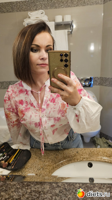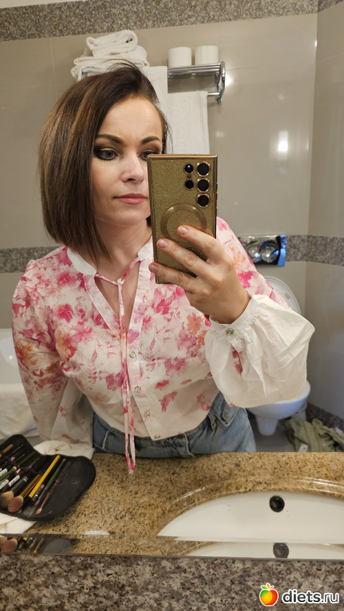 Мелькну в кадре, на ужин ходила в блузке "в жуткую розочку". Только что купила на распродаже специально для этого случая