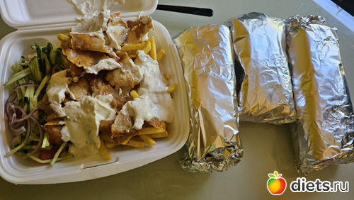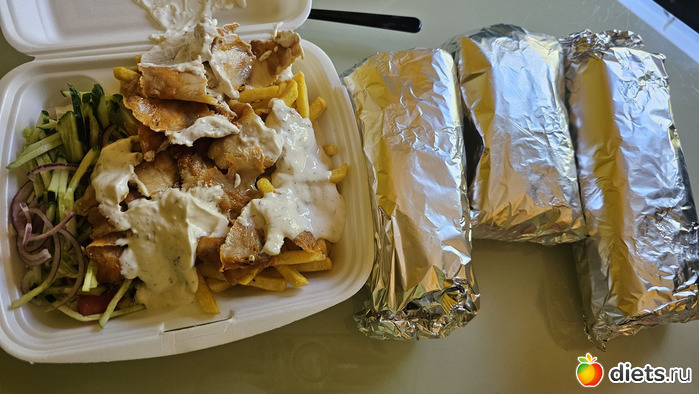 Один из обедов недели был из закусочной. Муж работал из дома и к нам присоединился. Моя порция - самая маленькая