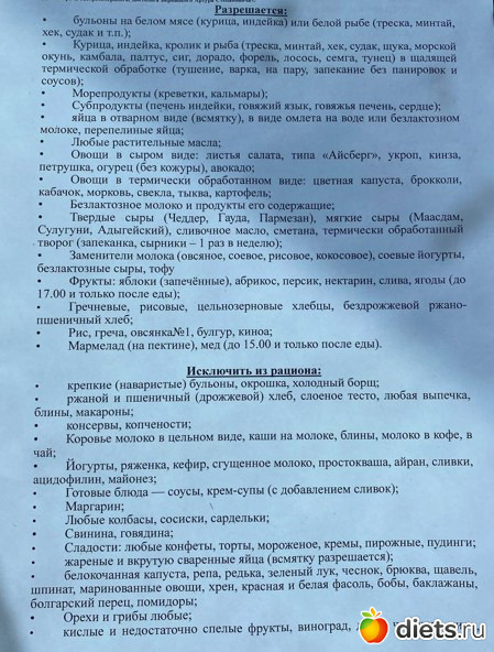 На обратной стороне листа запрет на все маринады, соусы, шоколад, кофе, квас, глютен, алкоголь, на все жареное.