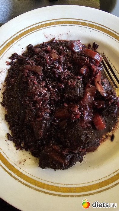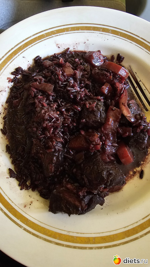 Дома нас ждал и обед от мужа - черный плов с индейкой