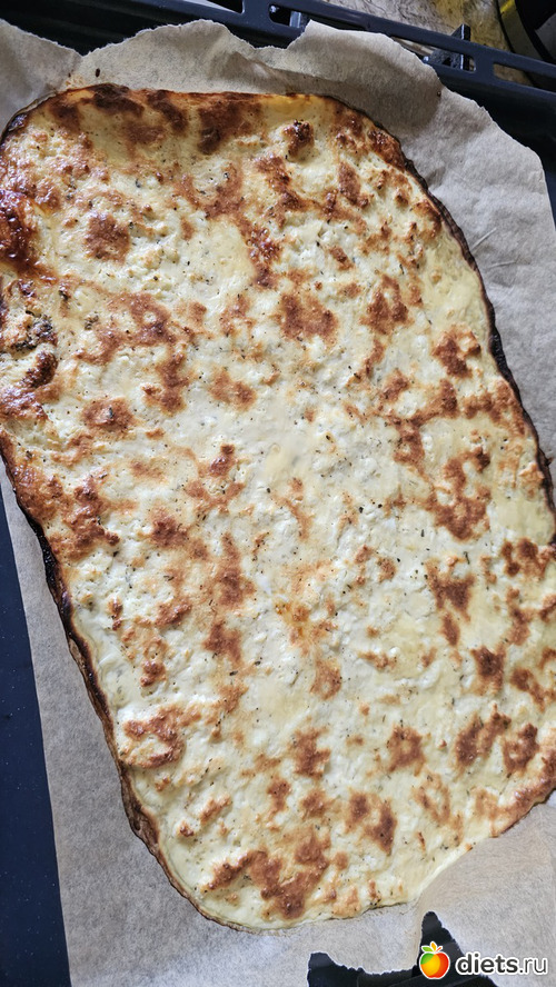 Так вот, в этот понедельник попробовала приготовить "flatbread", аля хлеб без муки. 500 г творога и 4 яйца, все. Добавляла еще чеснок, несколько видов перца, базилик. Печется при 200 градусах по рецепту 20 мин, у меня 40
