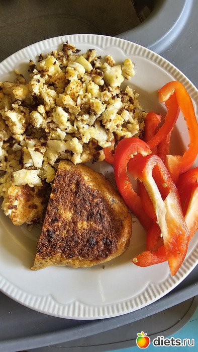 Рис из цв. капусты, с половинкой куриной котлеты. Котлеты готовил муж