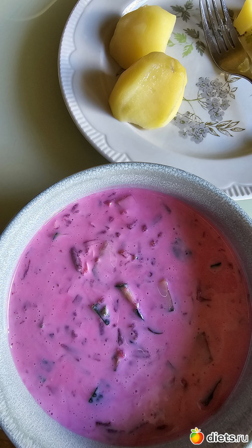 Мы тоже обычно на ботвинью или свекольник нажимаем, но тут был избыток греческого йогурта, попробовали вариацию литовского борща - зашло всем.