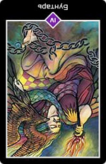 Мощный и властный человек на этой карте действительно является хозяином своей судьбы. На его плече находится эмблема солнца, а факел, который он держит в правой руке, символизирует свет его собственной, с трудом завоеванной истины.