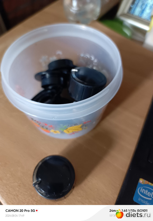 Сняла все ручки и приготовила к чистке. Я взяла для этого банку, можно взять другую тару. Заполняю её горячей водой.