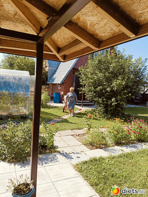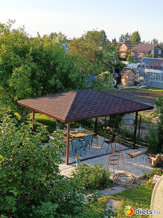 Итак чтоже мы заказали? Муж станок для заточки сверл, а я измельчитель веток. Коробку еле держала, очень тяжелая. На одежду мужа внимания не обращайте. Он хотел одеться нарядно, но... Ему же надо было жарить мясо, и он сказал, что лучше будет одет по дачному. Ах да, еще забыла сказать, что мы с ним доделали крышу в беседке, покрыли ее гибкой черепицей. Теперь потихоньку будем работать со стенами.