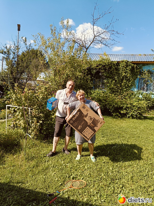 В 2021 году коптильню, в 2022 году большой холодильник на дачу, в 2023 году- люстру с пультом управления. А в этом году мы не смогли придти к общему подарку, и каждый заказал себе что захотел. Подарки заказали привезти Яндекс доставкой. Свой подарок мне пришлось от калитки везти на тачке.