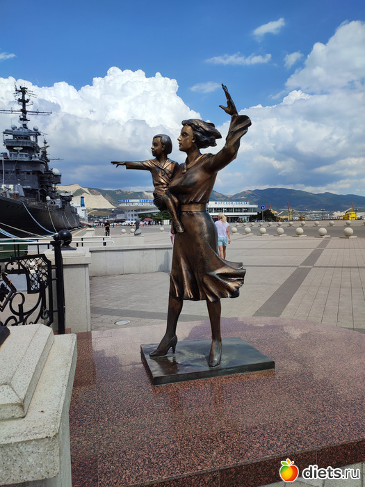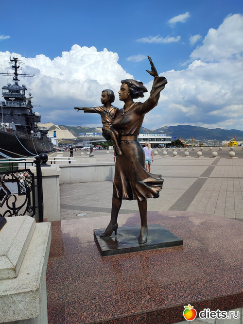 А вот этот памятник очень красивый. Как я понимаю, это жена моряка, которая его ждет на берегу. Очень нежный такой.