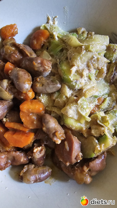 Овощечисткой нарезаю на длинные полоски, тушу в сковородке на воде минут 5 с большим количеством прирав поострее, обязательно чеснок, чилли перец, остальные приправы по вкусу Добавляю греческий йогурт под конец