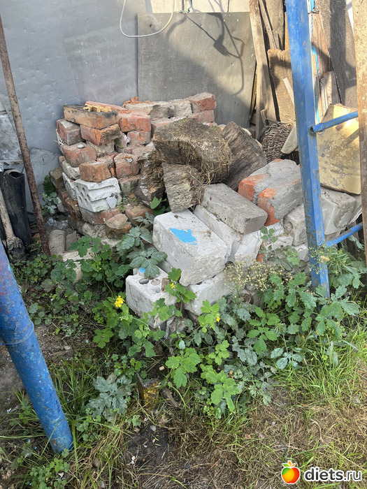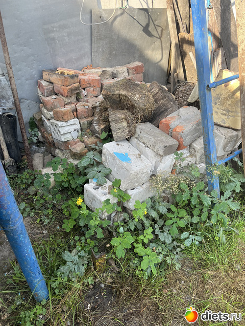 Утром я перенесла кирпичи на новое место -сложила, подготовила место для дров.
