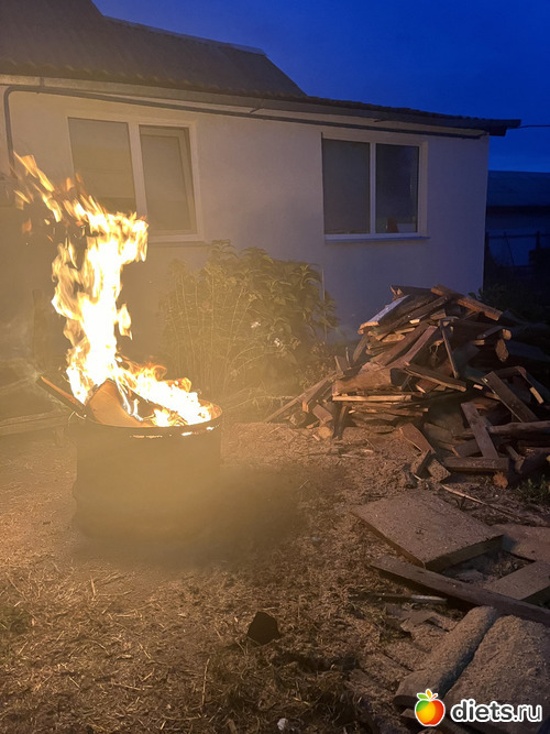 Вечером зажгли бочку. Я перед сном на всякий случай ведер 8 воды влила в нее и вокруг ведра 4 … завтра угли на кучу выбросим