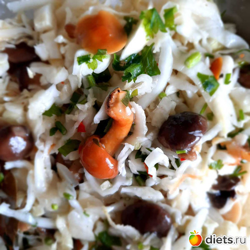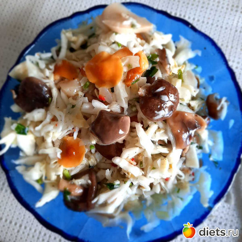 (пекинка+белокачанка (остатки)+ маринованные грибочки+петрушка+острый красный перчик)