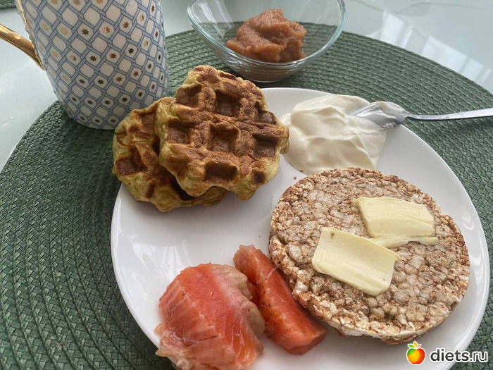 В тексте стоит "яблоки", в вазочке яблочное пюре без сахара с корицей. Это я делала пастилу и оставила себе поесть. Поэтому и считаю как просто "яблоки". Кабачковые вафли остались с вчерашнего ужина. Кстати! Никто не знает, как отредактировать название? Не представляю, как это я так их записала?