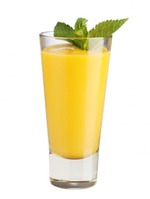 Все ингредиенты взбить в блендере с измельченным льдом. Коктейль налить в стакан хайбол, украшенный веточкой мяты.