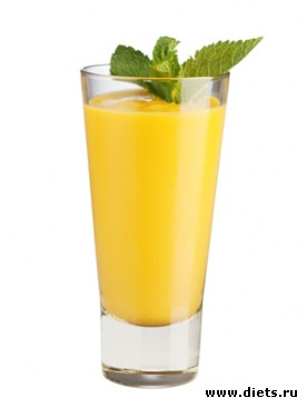 Все ингредиенты взбить в блендере с измельченным льдом. Коктейль налить в стакан хайбол, украшенный веточкой мяты. Читать полностью