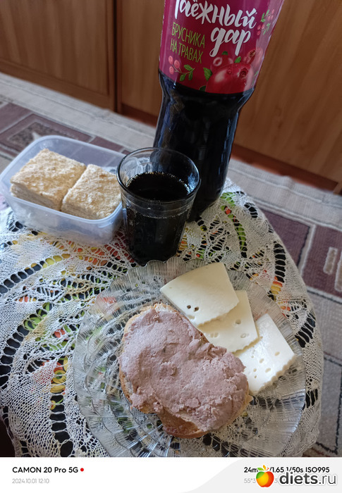 -Может и так быть,"всухомятку"- бутерброды, торт"Наполеон"-магазинный, вода-на бруснике