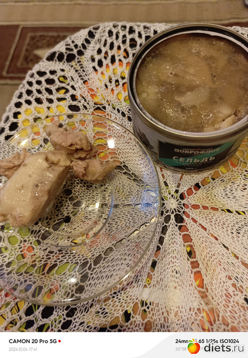 Не помню-показывала -нет. С моих вот детских лет-не покупали, просто не было консервов в желе. Раньше много покупали-был голец в желе, селёдку за продукт не считали