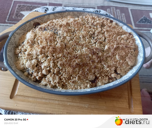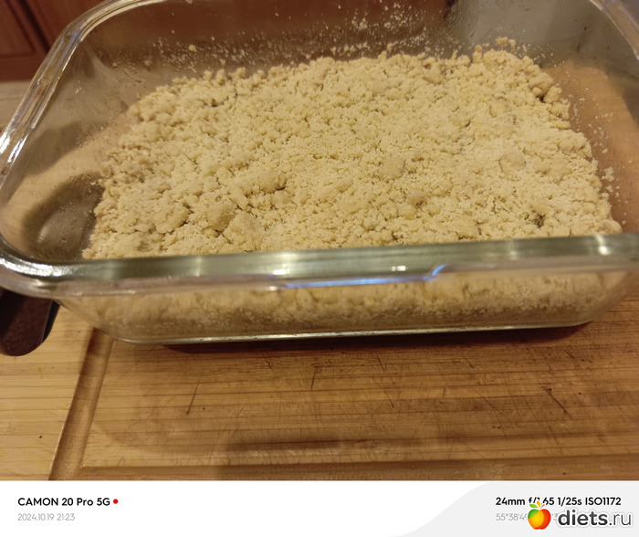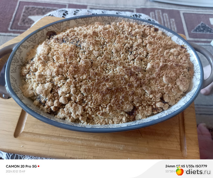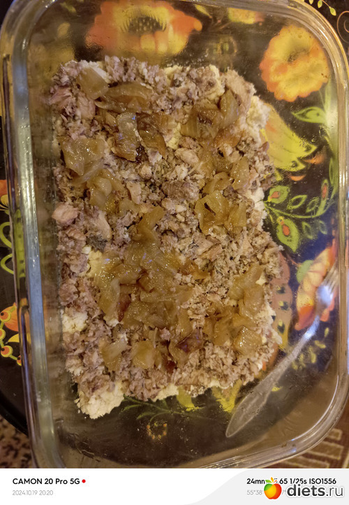 -Для завтраков испечен насыпной пирог с сардинами и жареным луком