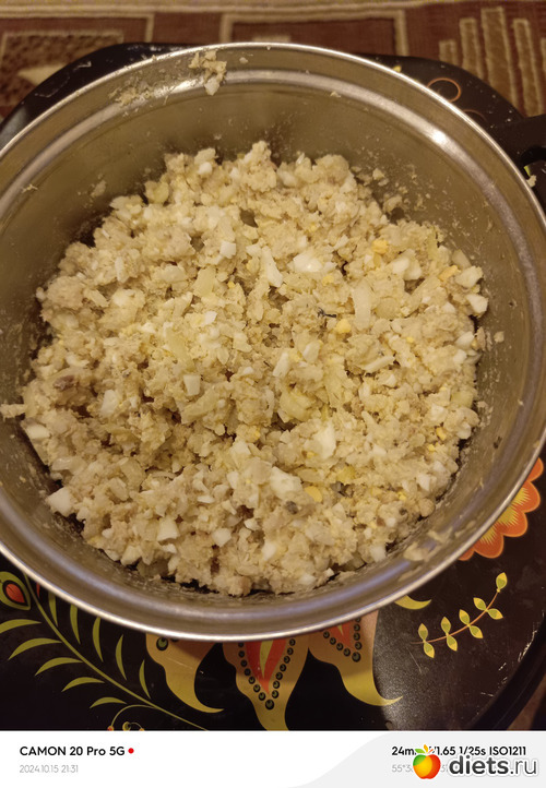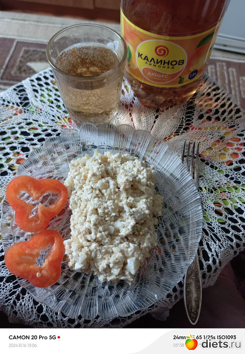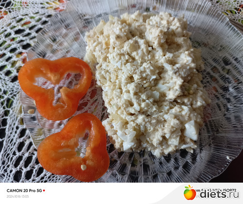 -Салат рыбный(рис, рыбные консервы, лук, яйца)