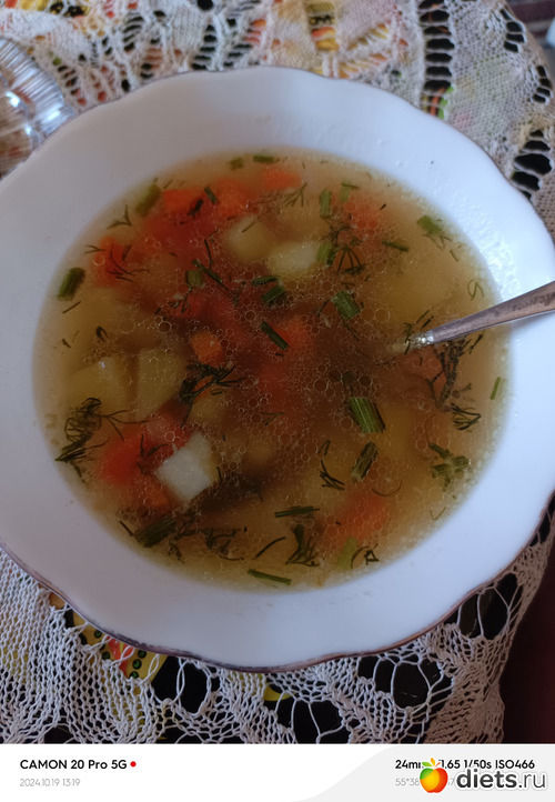 А у тети Иры всё было нарезано фигурно и очень эстетично, бульон был наипрозрачнейшим.