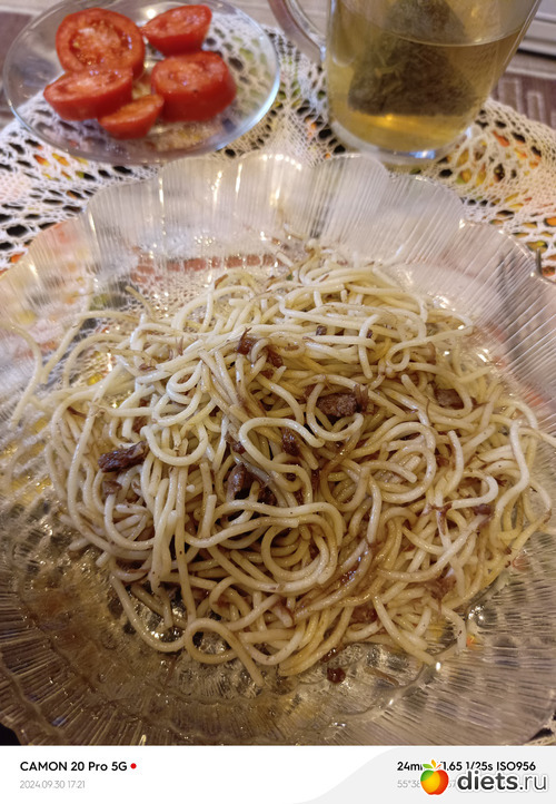 -Макароны с тушенкой и с соусом Терияки, белый чай