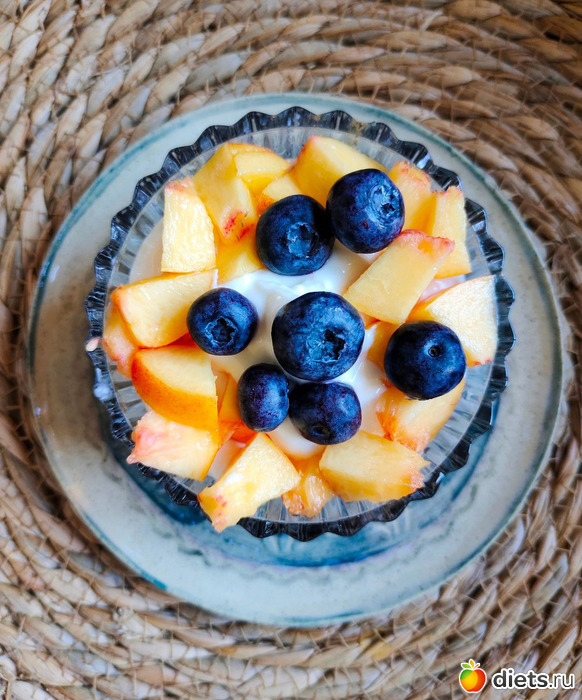 На ланч снова был мой любимый десерт из клетчатки и не сладкого йогурта с фруктами и ягодами.