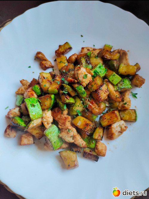 Ужин был максимально диетическим. Без излишеств. Грудка и кабачок. Ну и чашка чая.
