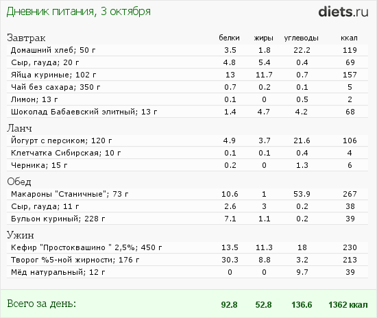 Diets.ru Дневник питания. Фотоотчёт. День 11-й. Быстрый.