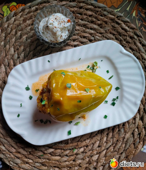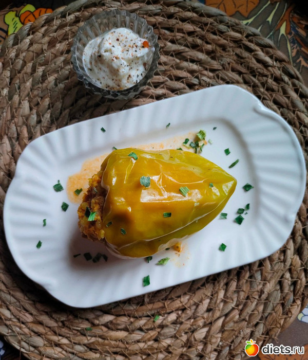 Ну, и на ужин был фаршированный перец. С йогуртовой заправкой:-)