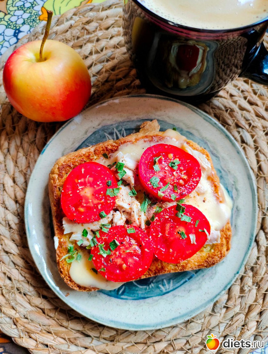 На завтрак делала себе "Типа пиццу". На домашнем хлебе. Получилось вкусно.