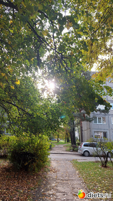 Мы гуляем рано, по утрам было в районе +7 -+9. Деревья чуть начинают желтеть. Иногда туманы. Гулять очень приятно.
