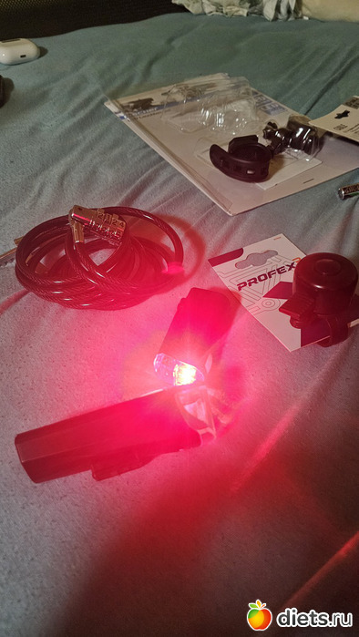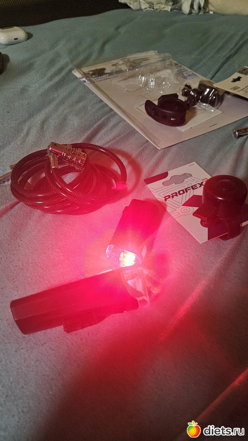 И прибамбасы для велосипеда тоже постоянно покупают, у нее есть замок, так теперь еще сигнализацию для велосипеда купили, то фонарик, то подставка под телефон, то еще чего)
