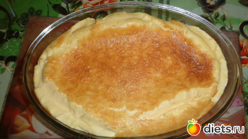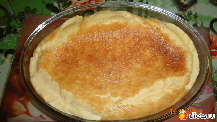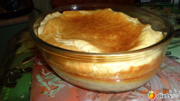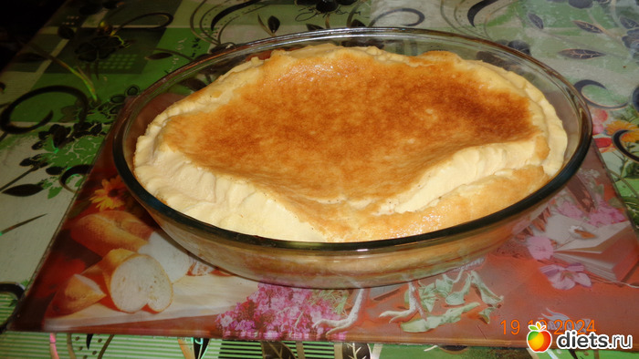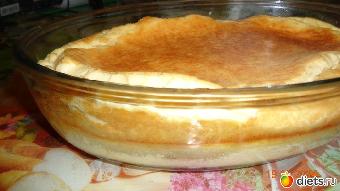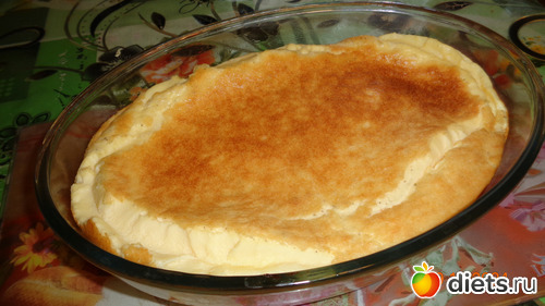 5. Перелить полученную яично-молочную смесь в форму. Форму заполнять не более, чем на 2/3, так как омлет поднимется. И поставить в предварительно разогретую до 200 градусов духовку на 30 минут. Первые 15-20 минут духовку не открывать.