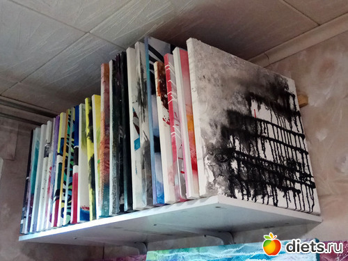 На будущее. Картины на подрамниках можно вот так хранить. Они не должны сорикасаться красочным слоем.