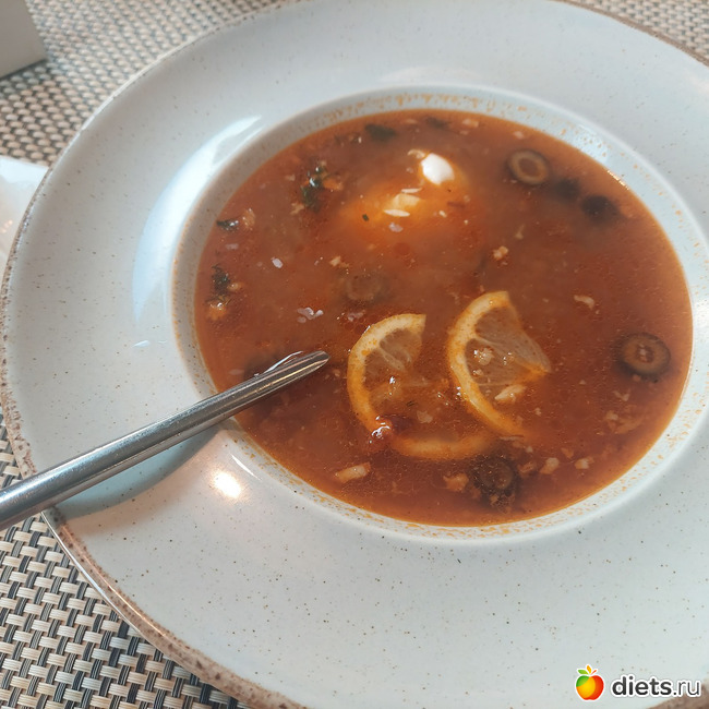 Солянка вкусная, сметану подают отдельно, булочку не стала брать