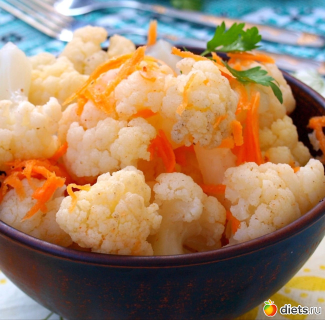 На приготовление пикантной закуски из цветной капусты уходит всего 20 минут! Потом нужно будет вся ваша выдержка, чтобы не съесть её сразу, а дать ей время пропитаться вкуснейшим маринадом. И через несколько часов у вас на столе – настоящий хит, от которого все будут в восторге. Настоящий деликатес! С утра замариновали - вечером уже можно есть или вечером замариновали и на следующий день едим хоть с самого утра