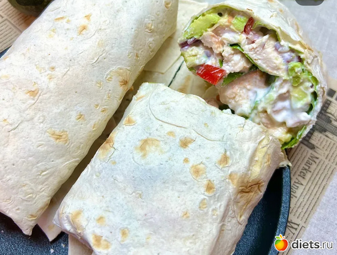 Загните боковые стороны лаваша и плотно заверните. Подавайте сразу. Приятного аппетита