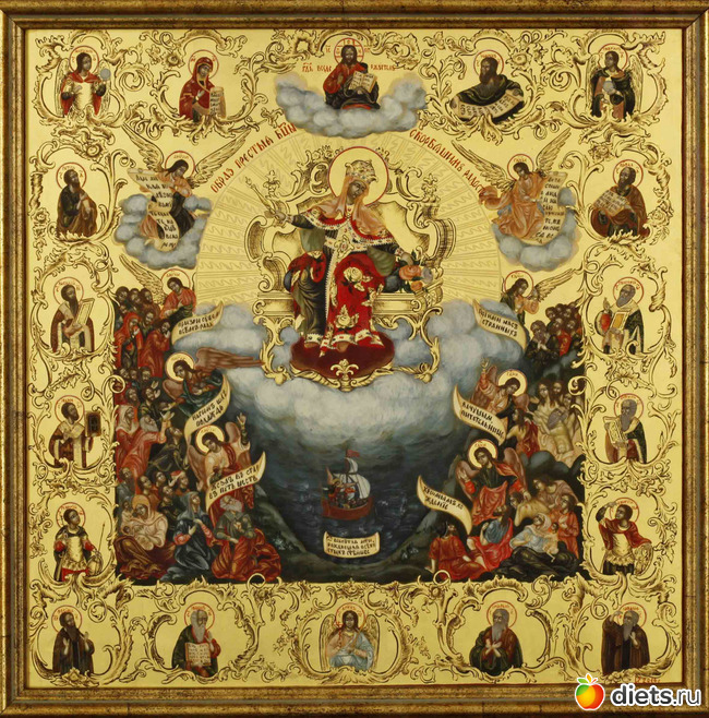 Помощница еси обидимых, ненадеющихся надеяние, убогих заступница, печальных утешение, алчущих кормительница, нагих одеяние, больных исцеление, грешных спасение, христиан всех поможение и заступление».