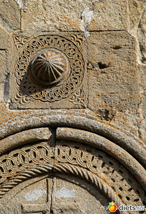 Снаружи Гергетская церковь украшена резьбой и барельефами в виде солнца, виноградной лозы, крестов, животных и других всевозможных орнаментов.