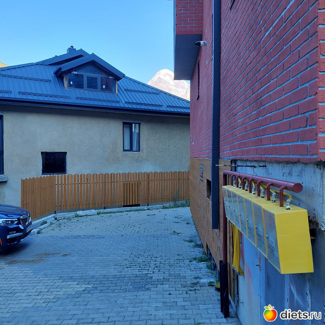 сыну дали ключи, водителю дали адрес и мы подьехали к 2 этажному домику.