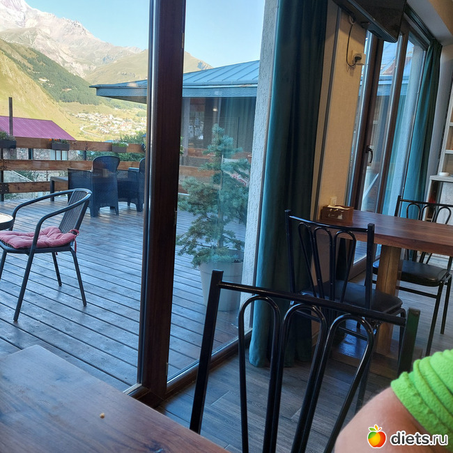 а я зеленый чай, любовались видами из окна, утром довольно прохладно!